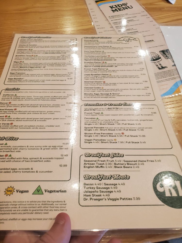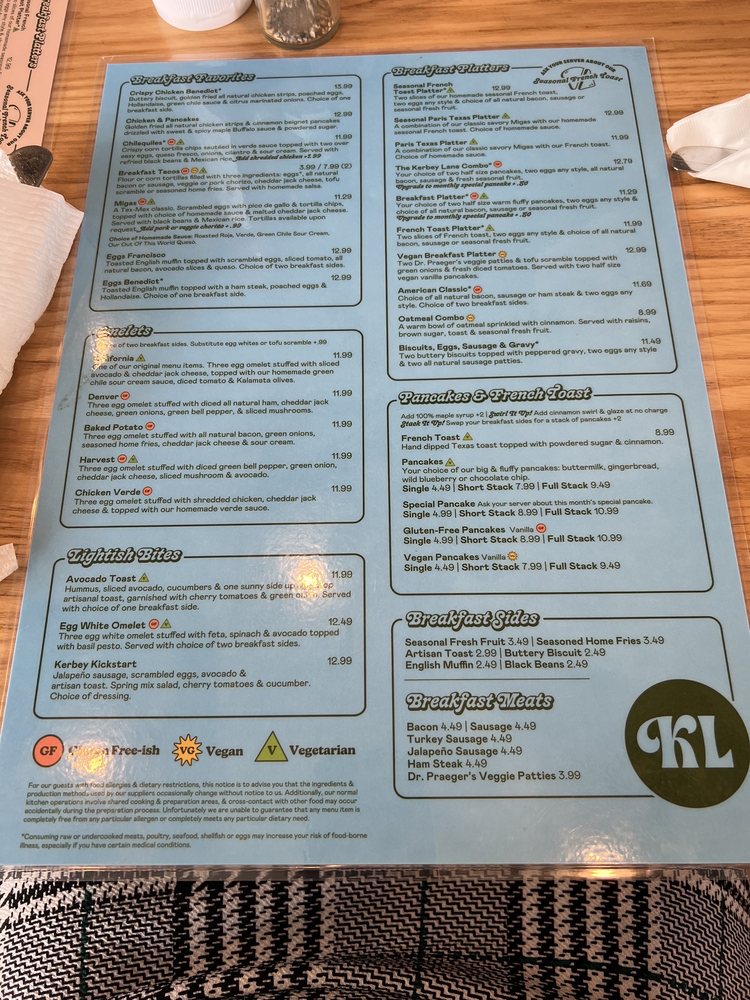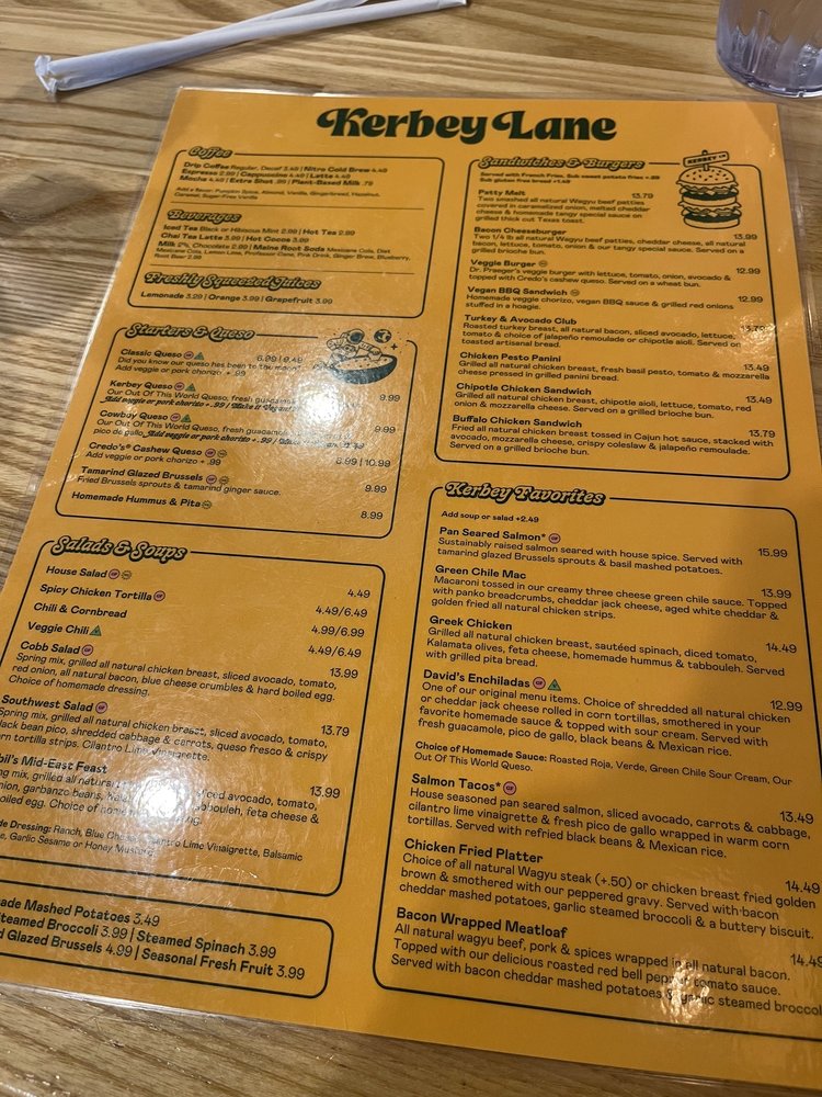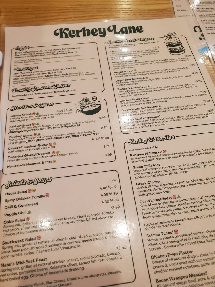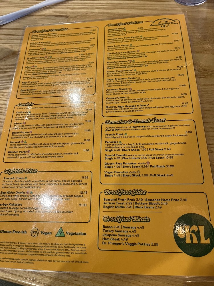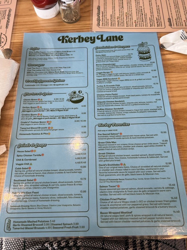 Kerbey Lane Cafe - Northwest offers a diverse menu in the Tex-Mex, American, Breakfast, and Brunch categories. Located in Austin, TX, this establishment provides a range of amenities such as delivery, takeout, vegan and vegetarian options, and outdoor seating. With a full bar and happy hour specials, it caters to different preferences. Customers praise the friendly staff, large portion sizes, and fresh ingredients. Standout dishes include the burrata with tomato and pesto appetizer, breakfast tacos with various fillings, Greek chicken with house salad, and blueberry pancakes. The menu also features unique items like the chilaquiles plate, Mid East Feast Salad, and broccolini sandwich. The quality of the Orange Mocha coffee is particularly highlighted. Overall, Kerbey Lane Cafe - Northwest provides a pleasant dining experience with a wide range of options for breakfast, lunch, and late-night cravings.